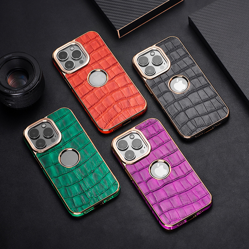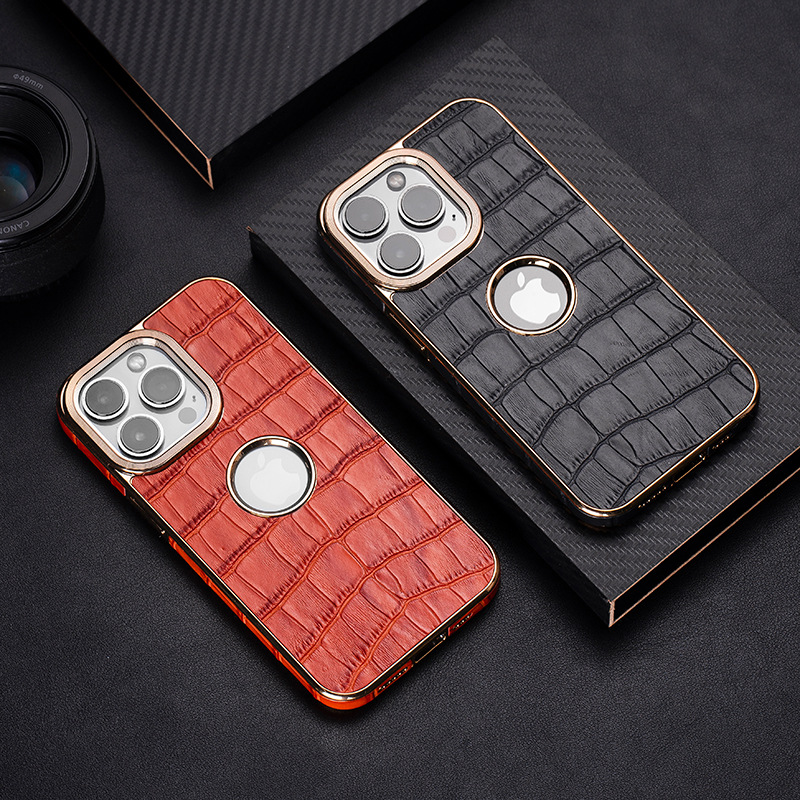 The Leather Crocodile Print Phone Case For iPhone Black - 644008992075 combines luxury and sophistication with its premium crocodile-textured leather. Featuring a distinctive round cutout to display your phone’s logo and electroplated edges for a refined touch, this case is designed to protect your phone while enhancing its style. Perfect for those who appreciate high-end aesthetics and durability.